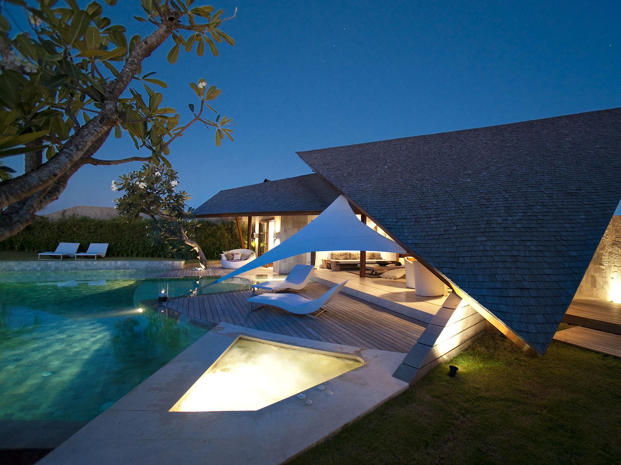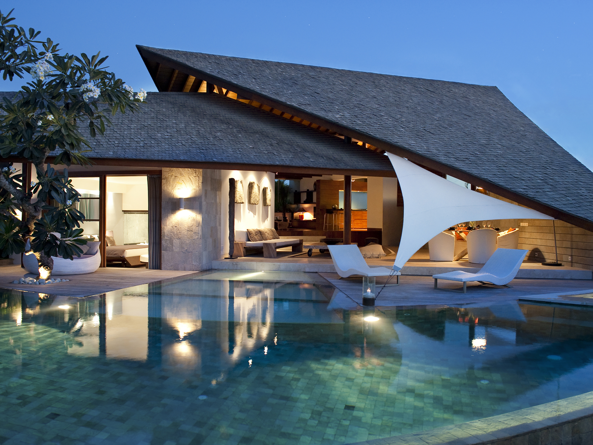 The Layar’s 11 three-bedroom villas flaunt the same striking architectural design features as the others in the 23-villa enclave. As well as being defined by their sweeping roof lines, these villas are arranged over several levels, adding extra interest. Welcoming semi-open-air living and dining rooms fan out from raised platforms alongside the kitchens and then merge seamlessly to pool decks and gardens.