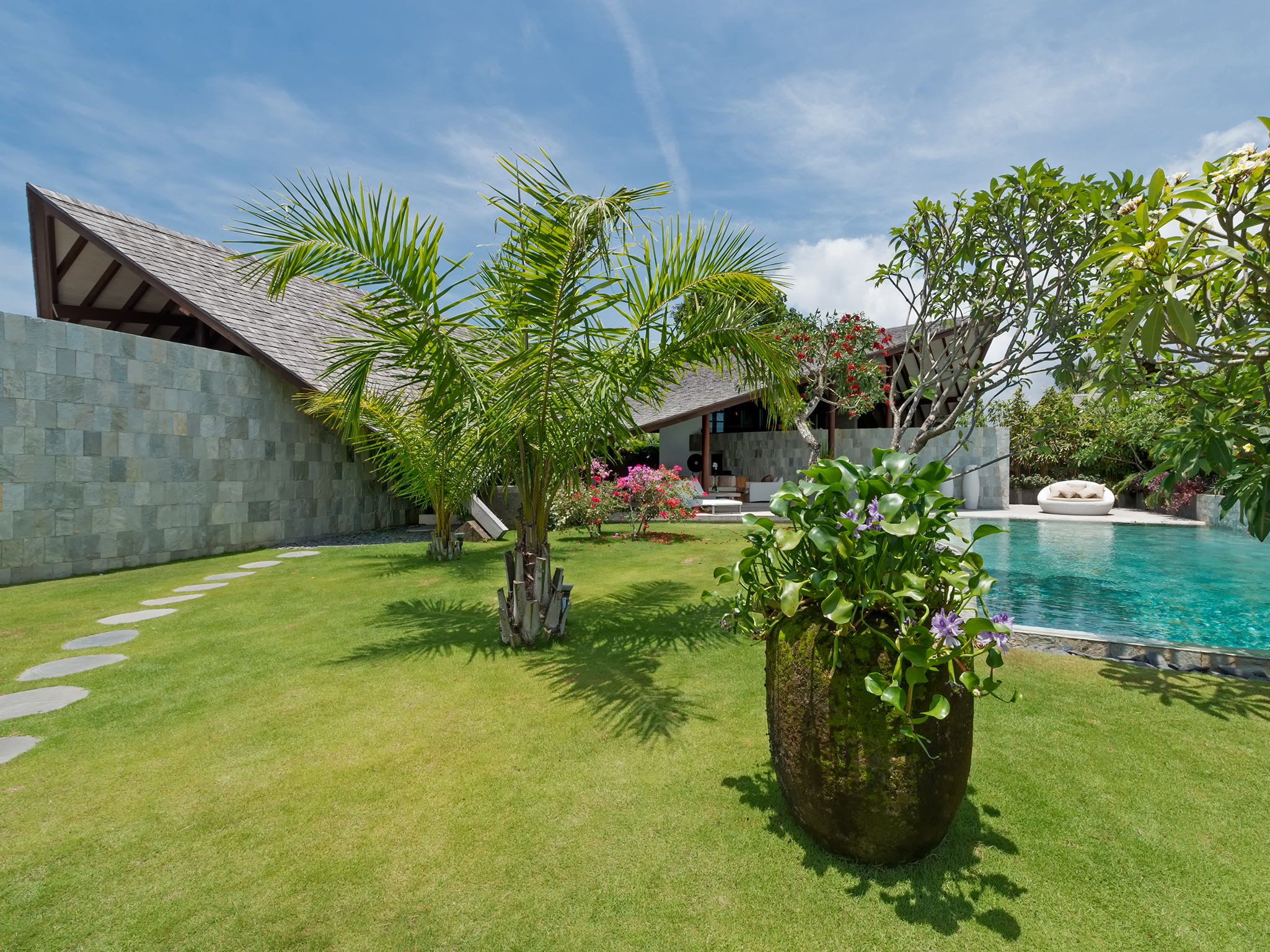 The three bedroom suites are all furnished with king-size beds, are very private, and have their own outdoor spaces – either a deck, terrace or garden bathroom. The bedrooms lie off the main living areas behind statement walls of stone or via well-screened entrances set at an angle or on different levels. The spacious master bedrooms come with glamorous bathrooms with large bathtub, shower, double basins and a private garden. The guest bedrooms are just as enticing and secluded, with equally gorgeous indoor/outdoor bathrooms, many also featuring their own private garden areas.