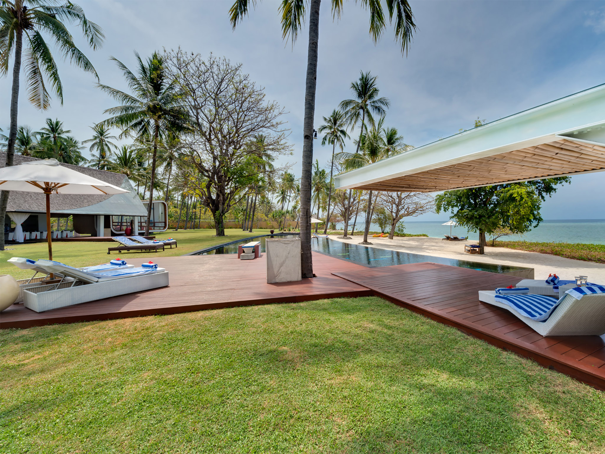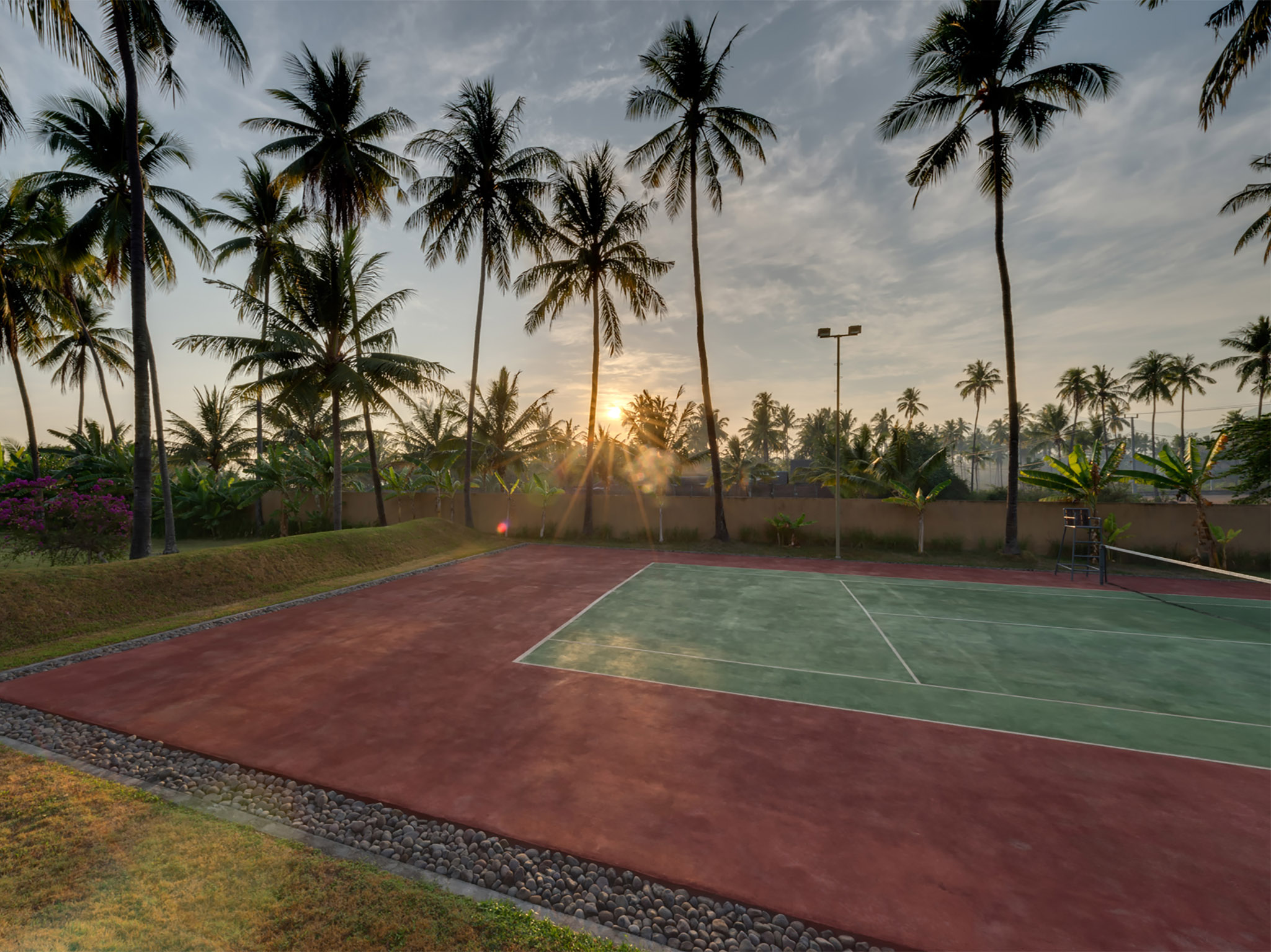 Villa Sapi comprises a main single-storey residence, a 21m swimming pool complete with kids’ pool, a stand-alone guesthouse with two more swimming pools, plus a floodlit tennis court and an antique thatched