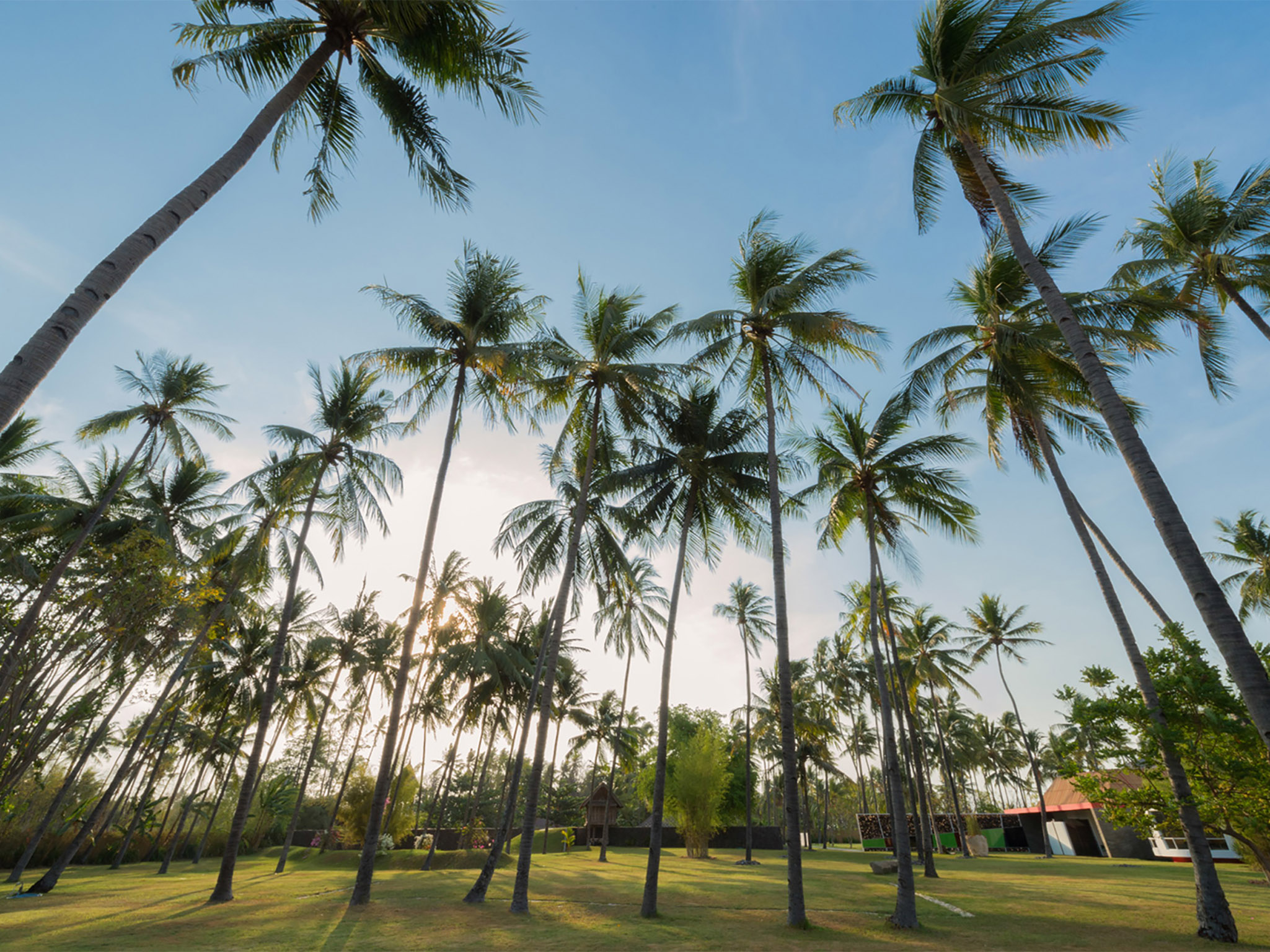 The main living space is furnished with segmented sofas and ottomans, crafted in coconut shell and big enough to seat 22. Adjacent to this, hidden doors open to three air-conditioned bedrooms – the generously sized master and two guestrooms – all with king beds, one of which incorporates a trundle bed for two under the main frame. The ensuite bathrooms all have indoor and outdoor showers, while the huge master bathroom also has a bathtub. Another ‘secret’ door leads to an oval-shaped bedroom that is also a functional office with a desk, and a ‘funnel’ in the centre that houses a guest washroom and supports a spiral staircase to a rooftop lookout.